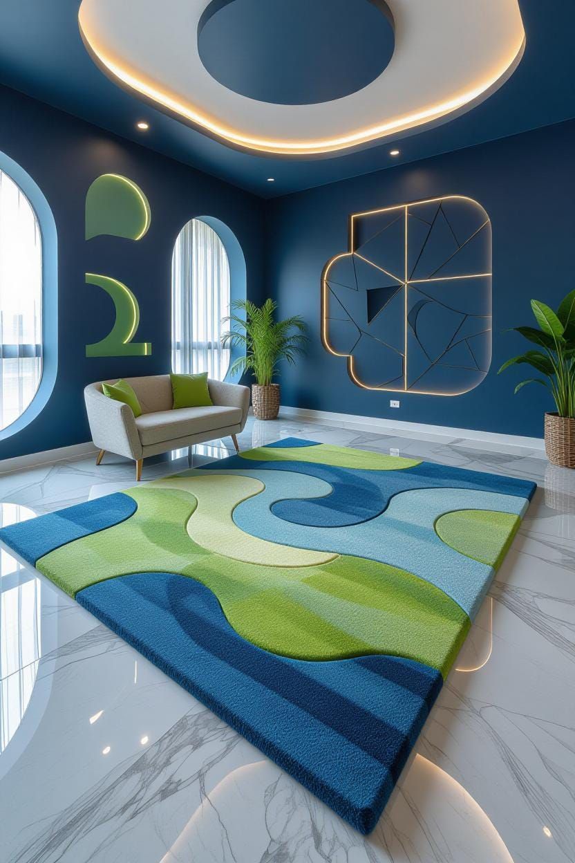 Rugs are considered to create a feeling of "warmth," "comfort," and "home." Their textures and colors can soften the lines of a room, making the space appear softer and more cohesive.